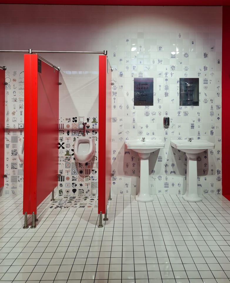 41zero42 è sempre sul mio podio nella gara tra gli stand più d’effetto, e quest’anno non si smentisce proponendo un cortile cinese e bagni pubblici con tanto di frasi ammiccanti scritte sugli specchi. Un altro meritatissimo ADI Booth Design Award per loro. Discorso a parte per Iris ceramica, grande dispendio di risorse per uno stand caratterizzato da effetti speciali.