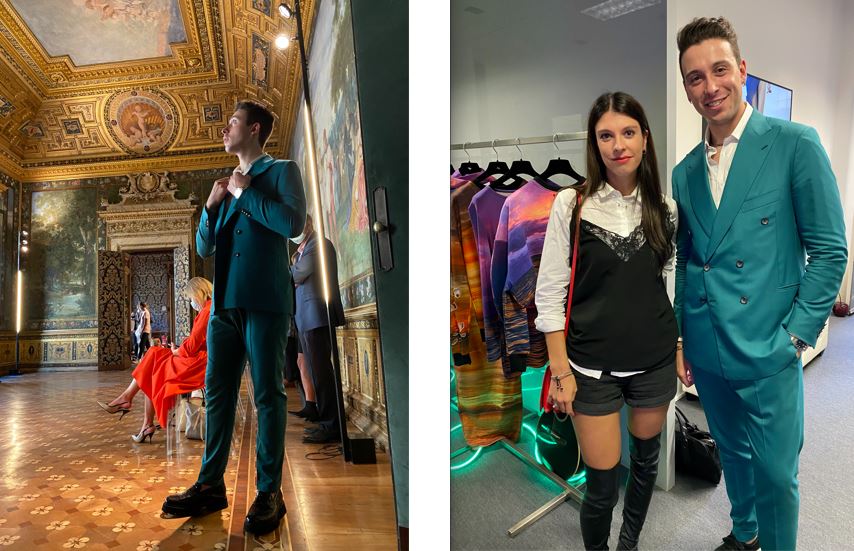 Cruciani ha presentato la linea Yezael “Dangerous Holidays a Coli e ai Bluvertigo, arrivati per il party direttamente da Verona dove avevano cantato al tributo per Franco Battiato la sera prima. La collezione nasce da una visione di una natura che si riappropria della terra dopo la pandemia, quando ci sono stati i lockdown umani. Prevede una palette di colori che ha 20 diverse sfumature d’azzurro, dall’indaco al turchese. La festa della quotidianità ha il sopravvento sul buio: una moda estiva serena, così come ci auguriamo tutti.