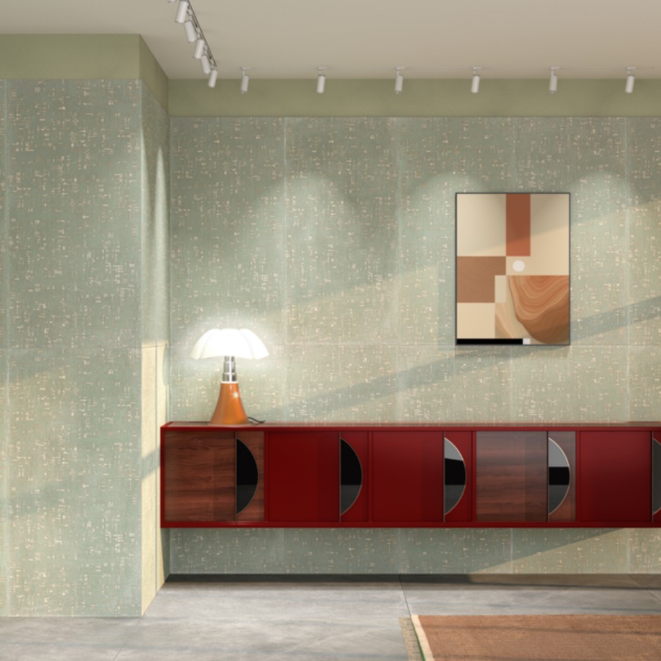 Il linguaggio contemporaneo delle due linee Areale e Tibula va oltre le convenzioni formali in una fusione di percezione e miraggio, di paesaggi sospesi tra apparenza e memoria. Se Areale si distingue per una trama fluida di segni e simboli che oscillano tra realtà e immaginazione, Tibula evoca l’antica città, situata all’estremità settentrionale della Sardegna, crocevia di civiltà e racconti. I decori di Origini, frutto di un raffinato equilibrio tra tradizione e innovazione, nascono dall’accostamento di smalti colorati e metalli preziosi su una solida base in grès porcellanato. Le superfici acquistano profondità e preziosità grazie a giochi di luce e cromatismi, che spaziano dal neutro caldo al verde marino, dal cotto terroso all’antracite vulcanica.
