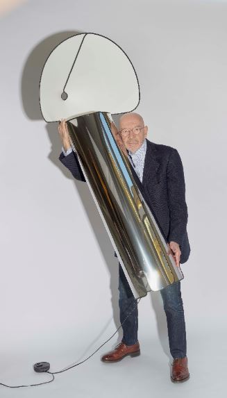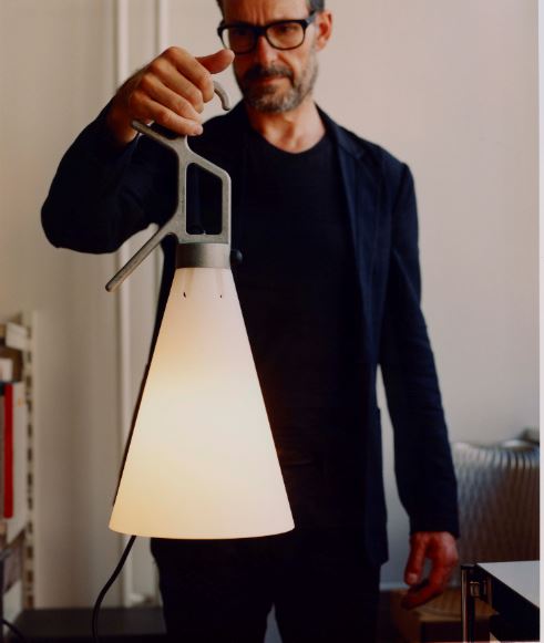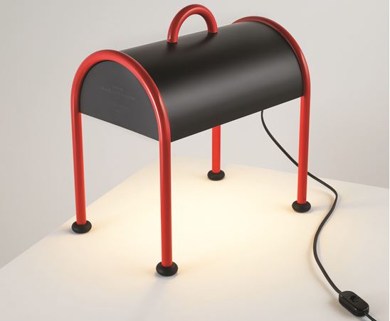 Il risultato è una lampada divertente e versatile,disponibile nei colori rosso e nero, la tipica combinazione cromatica amata dal maestro.