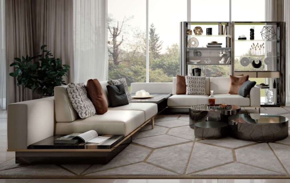La purezza formale di Ikat, altra nuova collezione di Bizzotto, dall’identità decisa ed essenziale che mira ad una proposta completa ed iconica, creata per il living e non solo. In primo piano è sicuramente la credenza, declinata in due innovative finiture (con effetto fiammato) Flamme blu notte e Flamme terra bruna, in abbinamento cromatico al mobile bar, al tavolo e al moderno divano componibile.