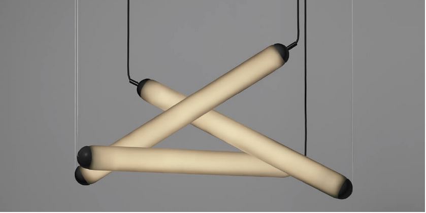 Uno dei nuovi prodotti importanti presentati a MAISON e OBJET lo scorso gennaio, PURO ECLECTIC, come si vede in foto, si mostra come una composizione a sospensione composta da tubi Puro soffiati a mano.
