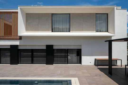 La palette cromatica di Interno4 trae ispirazione dagli omonimi e celebri quartieri milanesi e si compone di raffinate nuance in versione lucida o matt. In questa realizzazione, il bianco puro di Breccia Tortona è attraversato da ampie venature policrome, il cui fascino è esaltato dalla finitura lappata e dal grande formato 120×278 cm. In sintonia con i colori caldi degli interni, la facciata della residenza è rivestita con l’effetto pietra calcarea di Brystone. In questa collezione, il prodotto di cave millenarie trova un nuovo valore estetico, più morbido e fine. Le molteplici sfaccettature della roccia si esprimono attraverso una superficie unica e coerente, ideale per decorare e costruire solidi spazi architettonici. La variante impiegata per la villa di Altamura è Ivory, nelformato 60×120.