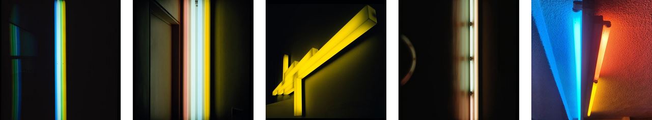 A partire dal 1963 Flavin sceglie di utilizzare delle lampade fluorescenti come elementi di una personale grammatica visiva. Una o più lampade, di uno o più colori e dimensioni standard, uguali o legate tra loro da proporzioni modulari, vengono collocate nello spazio, configurando delle installazioni che modificano luminosità e colore dell’ambiente: non vi è alcun riferimento contenutistico o simbolico, ma pura affermazione oggettiva dei materiali e della loro organizzazione. L’artista stesso descrive il suo lavoro come una “sequenza di decisioni implicite per combinare le tradizioni di pittura e scultura nell’architettura, con atti di luce elettrica che definiscono lo spazio” (D. Flavin, 1965).