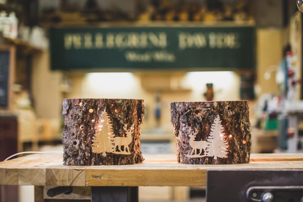 Una delle ultime creazioni di luce di Davide Pellegrini, assieme alla linea natalizia tutta in legno, è una lampada realizzata al tornio da un unico tronco di pino cembro. “È un legno profumatissimo con molte proprietà, io lo ritengo un vero ambasciatore dei boschi capace di portare quella natura armoniosa nelle nostre case. Un ottimo regalo ecofriendly“.
