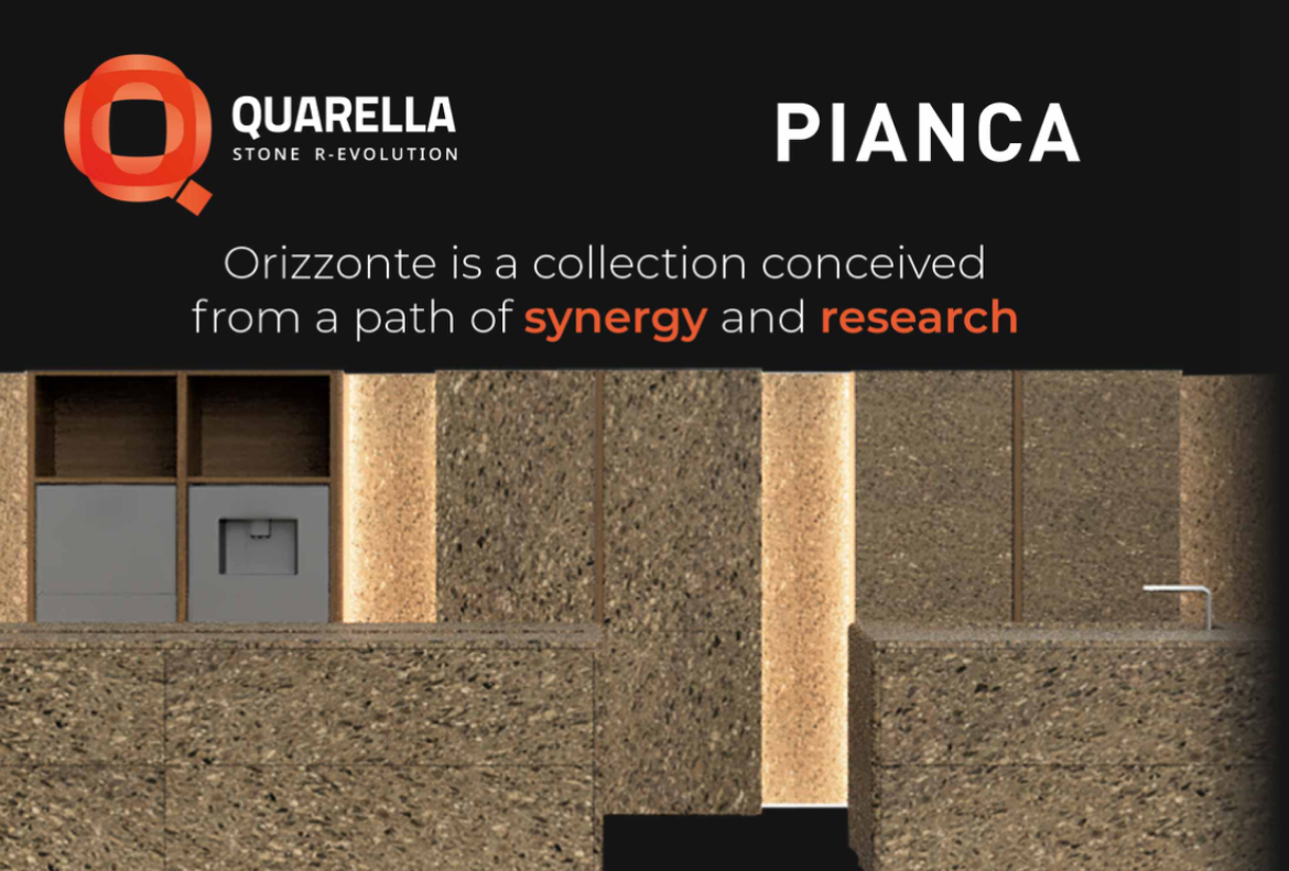 Questo materiale è stato usato per la collaborazione tra Quarella, leader Italiano nel settore del marmo e degli agglomerati, e Pianca, azienda di riferimento nel mondo del design. In occasione di Sicam 2024 c’è un nuovo progetto cucina per la Collezione Orizzonte nato dalla ricerca continua su materiali e finiture innovative.