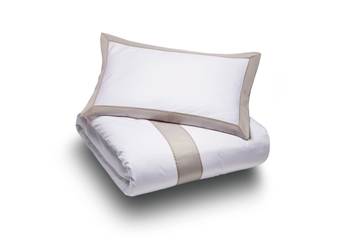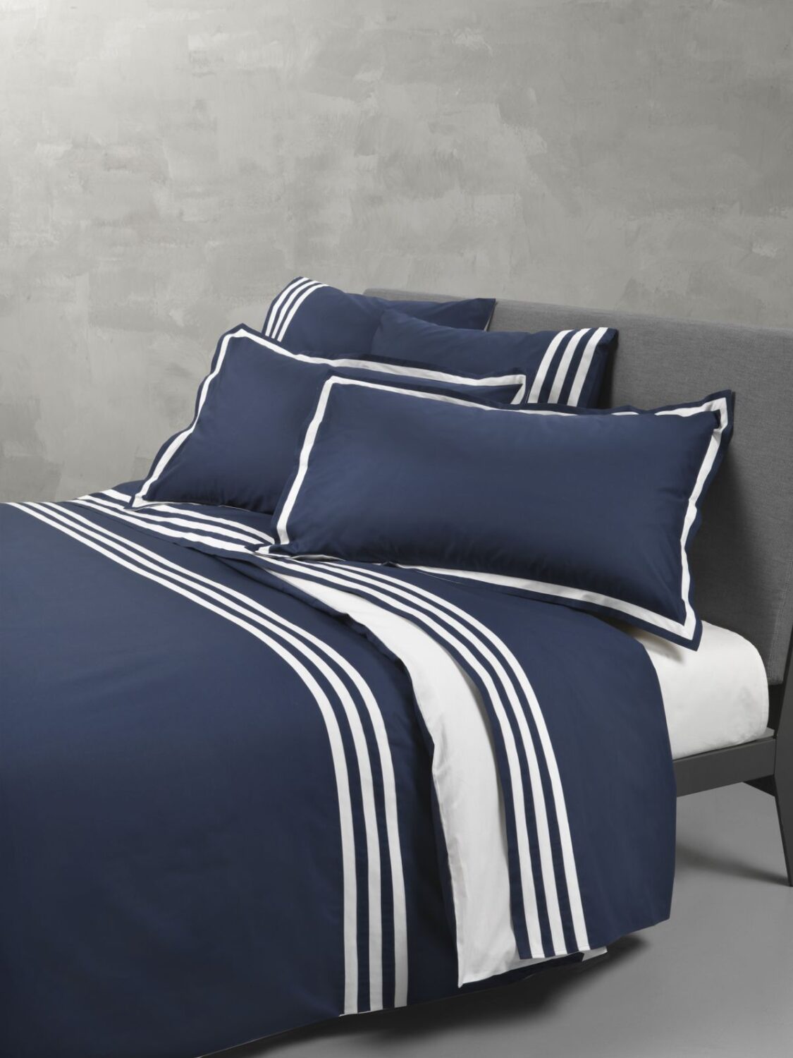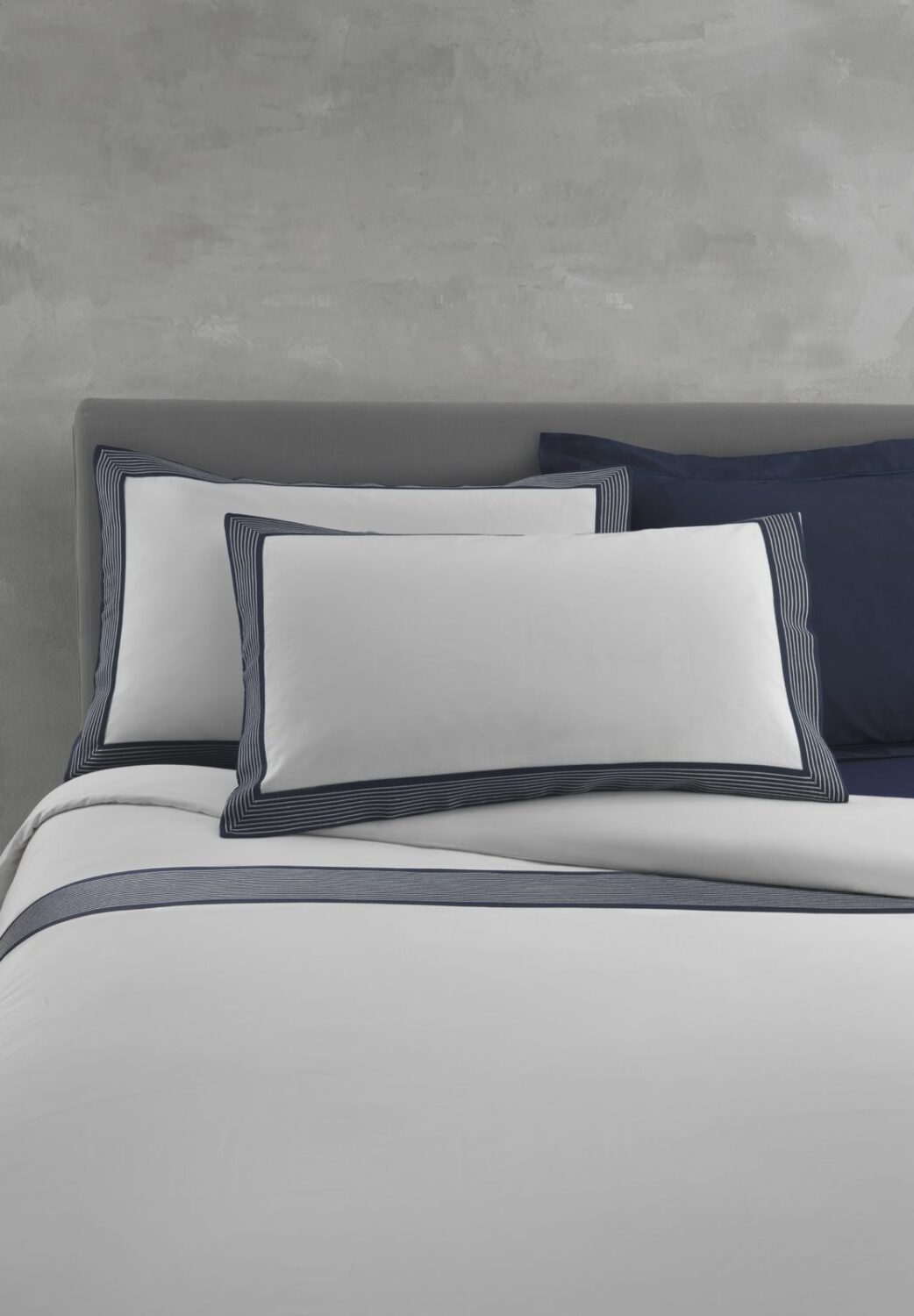 Le geometrie creano un morbido dinamismo regalando a tutti i prodotti un’affascinante equilibrio che fa di questa linea un perfetto esempio di eleganza contemporanea. La plissettatura presente in Palazzo Reale si affianca ai ricami multirighe di Palazzo Gioioso, il doppio cordonetto disposto a cornice di Palazzo Erici sposa il piping a contrastoin Palazzo Sormani. I best seller Hilton, Ritz e Two Tones completano infine la collezione, interamente coordinabile ai copriletti jacquard in puro cotone San Marco, caratterizzato da un motivo classico e ornamentale, e Martesana, tinto e lavato in capo con angoli a cappuccio.