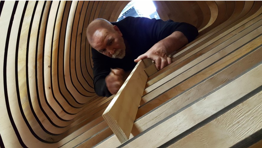 Nato in Abruzzo nel 1953, Franco Perrotti si è formato a Milano dove ha iniziato il suo percorso in Tecno spa. Successivamente ha sviluppato con il suo studio progetti di Design e Interior Design per marchi nazionali e internazionali, senza mai tagliare il cordone ombelicale che lo tiene stretto da sempre al mondo dell’arte. Negli ultimi anni ha iniziato a lavorare costantemente su progetti di installazioni artistiche, allestimenti, sculture e uso del colore su superfici anche non convenzionali. È nato così nel 2019 il “DISSUASORE”, metafora che prende corpo in un piccione, gigantesco e allegorico, realizzato in betulla e chiodi d’acciaio, frutto di grande lavoro manuale e molta tecnologia, divenuto emblema della complessa relazione tra esseri umani, ma anche tra uomo e ambiente naturale. È stato in questo modo che Perrotti ha iniziato a misurarsi con oggetti mastodontici e a trasferire la gestione ed i criteri di un progetto di design in una opera d’arte.