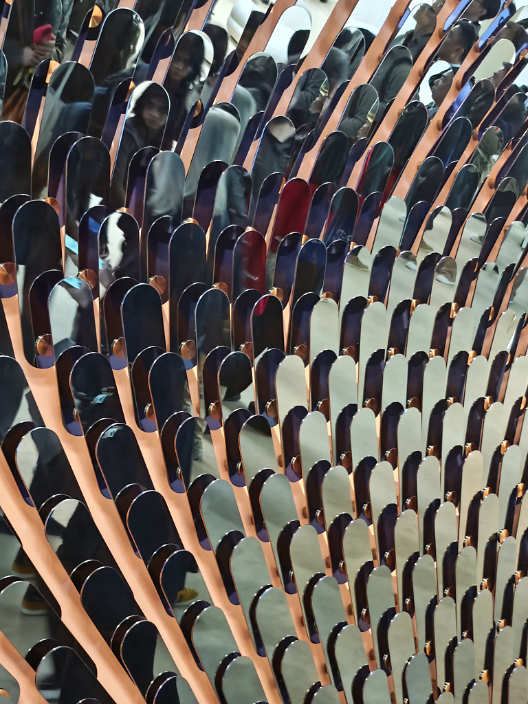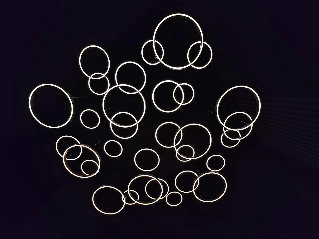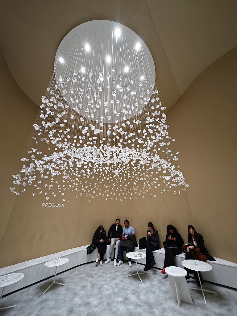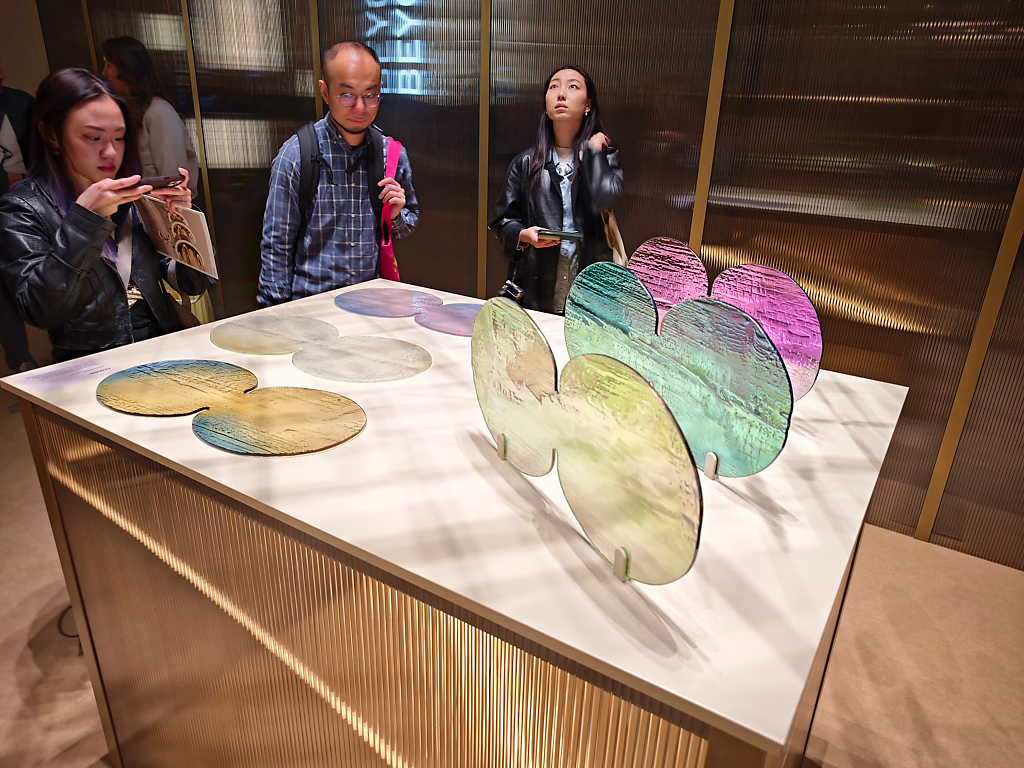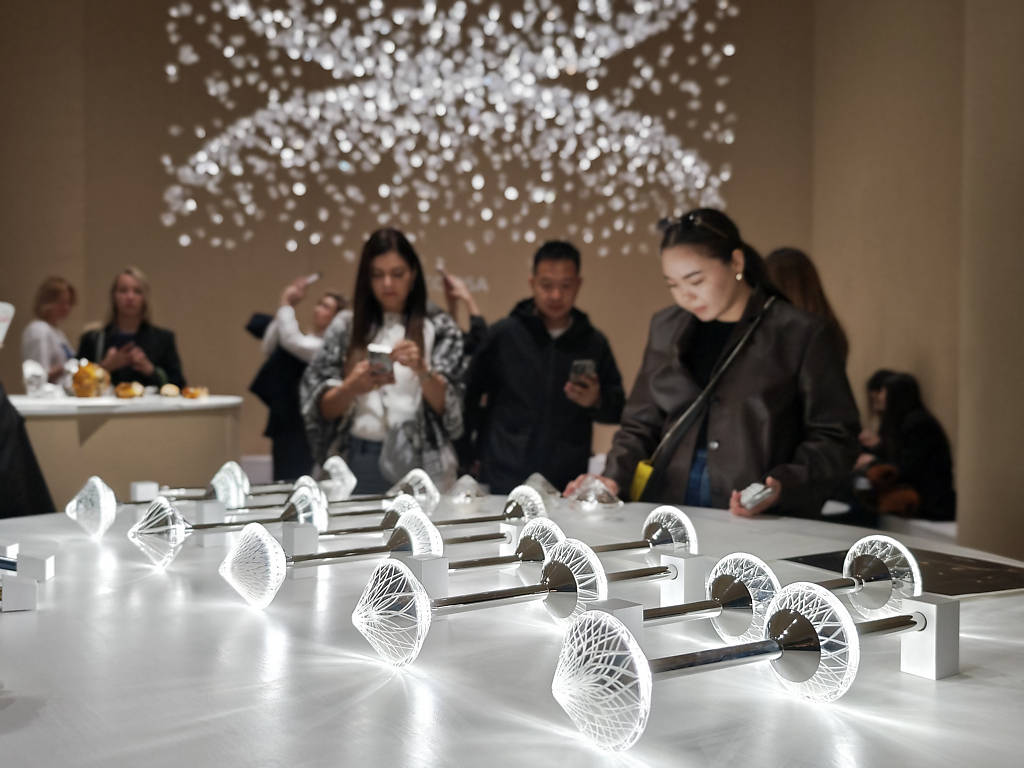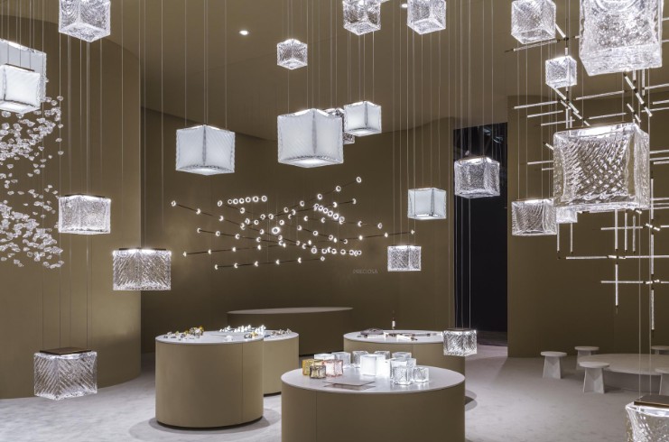 Nella foto l’installazione Light it your way : il lancio di Crystal Links con una selezione di Signature Designs, tra cui le iconiche Raw Crystal, Crystal Grid e Crystal Pixels.