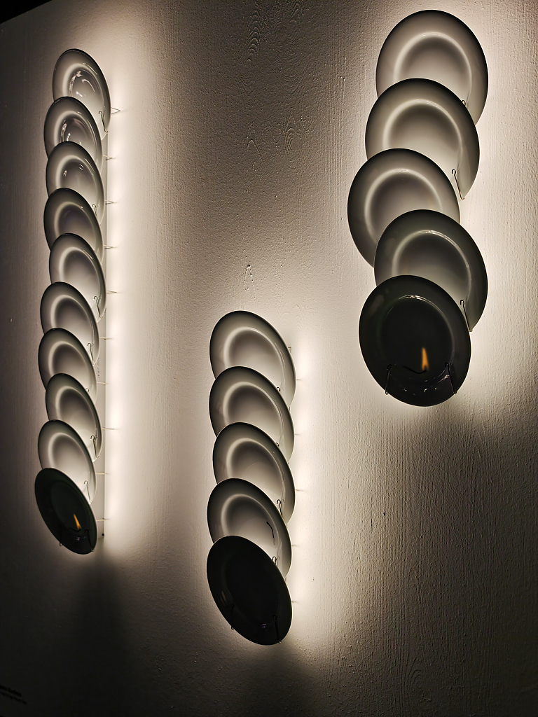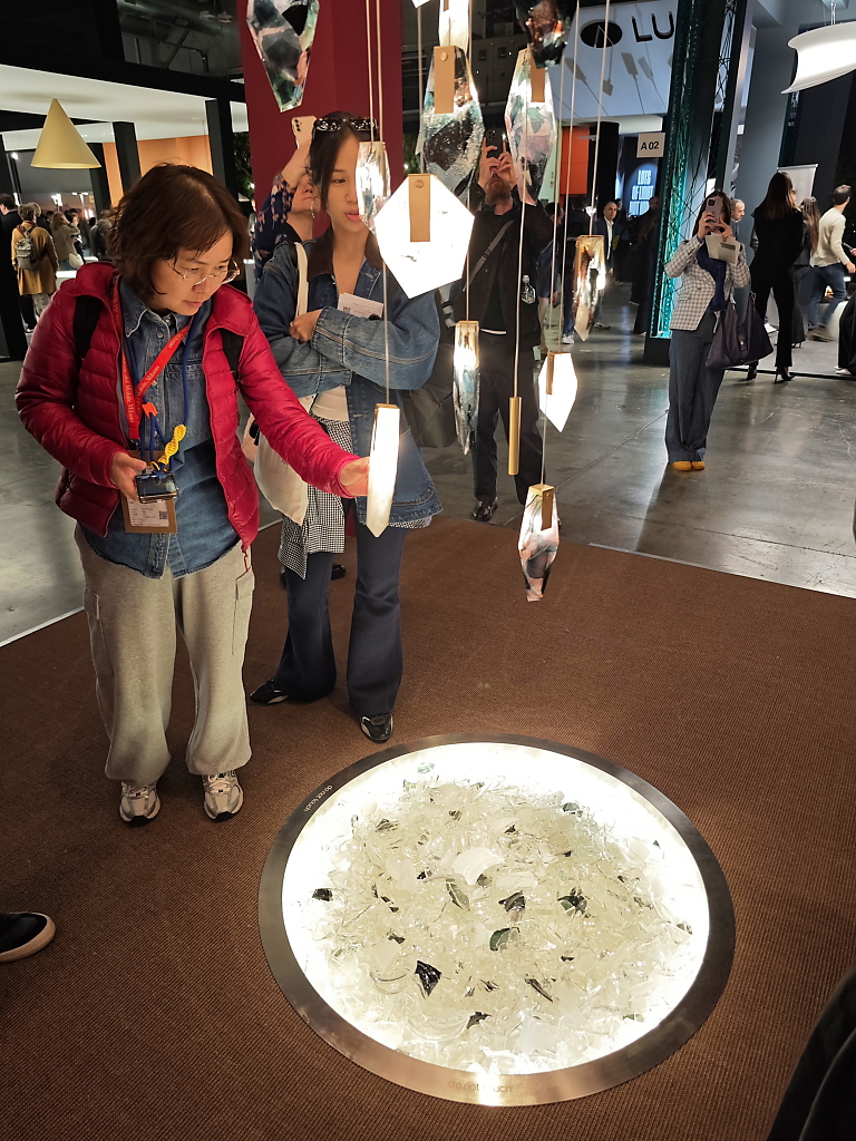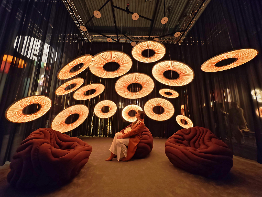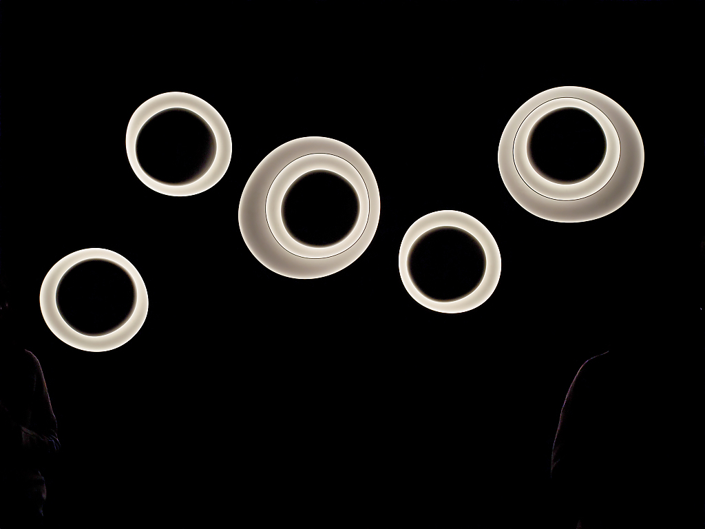 Alcuni video – quelli più astratti e poetici – erano esposti anche all’esterno della superficie dello stand –per invitare i visitatori a entrare e scoprire le nuove lampade di Flos. Queste includono la riedizione della lampada da terra Seki-Han di Tobia Scarpa, un modello molto raro in legno disegnato nel 1963; le sospensioni modulari in vetro Luce Sferica e Luce Cilindrica di Ronan Bouroullec, caratterizzate da leggerezza e poesia; la lampada da parete Maap, di Erwan Bouroullec, realizzata in tyvek e modellabile come un foglio di carta; la famiglia di lampade da terra, da parete e a sospensione in vetro e alluminio Nocturne di Konstantin Grcic, fusione perfetta di artigianalità e tecnologia industriale; l’ironica piantana Jam Session di Piero Lissoni, configurabile in più teste luminose; e infine la suggestiva collezione Linked, di Michael Anastassiades, un sistema modulare in vetro dal carattere poetico ed evocativo. Oltre alla SuperWire di Formafantasma, protagonista anche dell’installazione realizzata ad hoc per lo showroom.