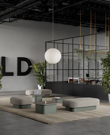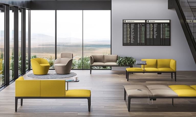 AFINA – Un sistema modulare di divani, pouf e coffee table pensati per una destinazione d’uso eclettica, che spazia agevolmente dall’ambiente lounge sino alle aree di attesa, adeguandosi a qualsiasi area si intenda destinare all’interazione e alla socializzazione delle persone.