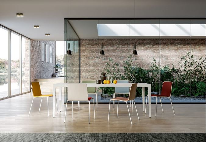 Impilabilità, agganciabilità e disponibilità di una tavoletta scrittoio amovibile, prevista solo per la variante a slitta, permettono a Yo di inserirsi in spazi pubblici quali biblioteche, auditorium e sale polifunzionali.