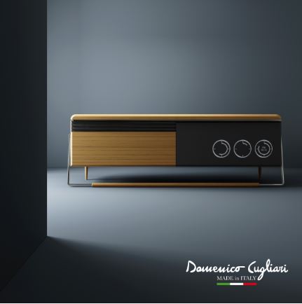 MaDJa si reinterpreta. La funzione di arredo e contenimento si veste di creatività e tecnologia. Il mobile è infatti dotato di un raffinato impianto Hi-Fi 2.1 che lo rende un oggetto con il quale interagire. Attraverso la sua anima tecnologica, informa sull’ora, lascia ascoltare la radio, si connette allo smartphone per riprodurre la musica preferita con la possibilità di ricaricarlo grazie ad una base wireless. Tutte le funzioni vengono comandate da tre grandi rotori che informano tramite una matrice discreta e colori soffusi sulla configurazione in uso. All’interno del contenitore è presente un vano (celato alla vista) dove alloggiano decoder satellitari, TV box o qualsiasi altro accessorio in grado di migliorare l’esperienza audio. Inoltre si possono implementare successivamente degli upgrades per regalare nuove emozionanti funzioni. L’ anima tecnologica, firmata dal maestro del suono Gianni Labate, è incastonata in un guscio artigianale, finemente realizzato dai falegnami della Domenico Cugliari 1961. Artigiani del legno, quelli di una volta, che mettono insieme materiali pregiati, metalli, pelli, finiture contemporanee.