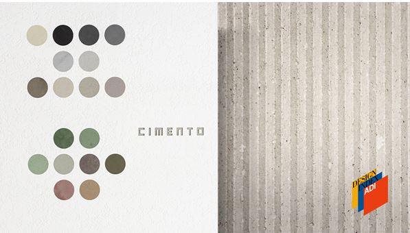 CIMENTO® è un materiale unico e sostenibile, che attualizza il tradizionale calcestruzzo attraverso nuove valenze tattili, estetiche e cromatiche, leggerezza strutturale e ampia versatilità di applicazione, permettendo di ottenere rivestimenti per pareti, pavimenti, soffitti, facciate ventilate e arredi(CIMENTO® Collection presentata per la prima volta alla Milano Design Week 2019, con l’art direction di Aldo Parisotto, Parisotto+Formenton Architetti).