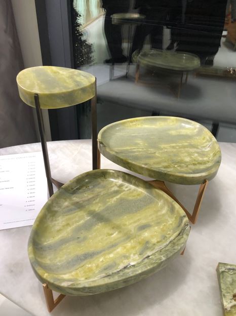 Antolini realizza la sua prima Tableware Collection scegliendo l’Irish Green, il marmo simbolo della Exclusive Collection che ha contribuito a rendere l’azienda veneta il brand internazionalmente riconosciuto e indiscusso delle pietre naturali esclusive. I toni del verde, le sfumature digradanti dallo scuro al chiaro, le venature bianche, il colore traslucido di questo spettacolare marmo sono enfatizzati dall’accostamento con il seducente metallo proposto nella sofisticata cromia Rose Gold.