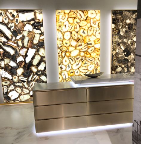 Design italiano per ambientazioni inedite: Antolini dal Veneto alle case prestigiose da tutto il mondo ha in carnet marmi, quarziti, graniti, onici. Tanto da essere leader mondiale nella produzione di lastre in pietra naturale sia di granito che di marmo e di tante altre tipologie di marmi.