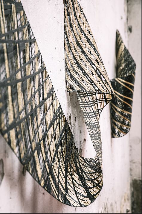 La naturale tensione della struttura in fibra rende possibile creare un oggetto leggero e ampio sulla parete. La forma tridimensionale crea affascinanti strati intersecanti, che cambiano da ogni prospettiva e con ogni movimento. La luce risplenderà attraverso le strutture e proietterà bellissime ombre sul muro, le ombre della luce del giorno varieranno durante i vari momenti della giornata. Poiché il design consiste in una semplice striscia, l’arazzo può essere adattato perfettamente a qualsiasi spazio.