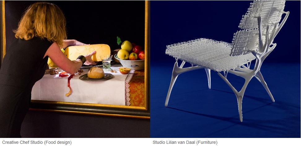 La mostra presenta una gamma di soluzioni e concetti, da quelli artistici e sostenibili a quelli tecnologicamente innovativi. Creative Chef Studio, Jasper Udink ten Cate, sfuma i confini tra cibo, design e arte. Jalila Essaïdi trasforma i rifiuti in tessuti attraverso un processo brevettato chiamato Mestic, una delle applicazioni più innovative di scarto di origine animale. Le scatole di cartone diventano lampade pensate per l’attenzione nelle mani di Cartoni Design. La designer Aleskandra Gaca crea tessuti architettonici stampati in 3D che portano conforto in ambienti eccessivamente stimolati. Utilizzando l’acqua di scarico per creare una tinta tessile, Studio Nienke Hoogvliet protesta la moda veloce con il suo Kimono Kaumera.