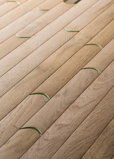 Biscuit, la collezione parquet disegnata da Patricia Urquiola per Natural Genius e scelta per la pavimentazione del centro, si distingue per la capacità di diffondere il calore dell’accoglienza e per il suo raffinato carattere femminile. Si tratta di un parquet tradizionale che viene rivisitato dando vita a una nuova morbidezza visiva e a moderni e originali schemi.