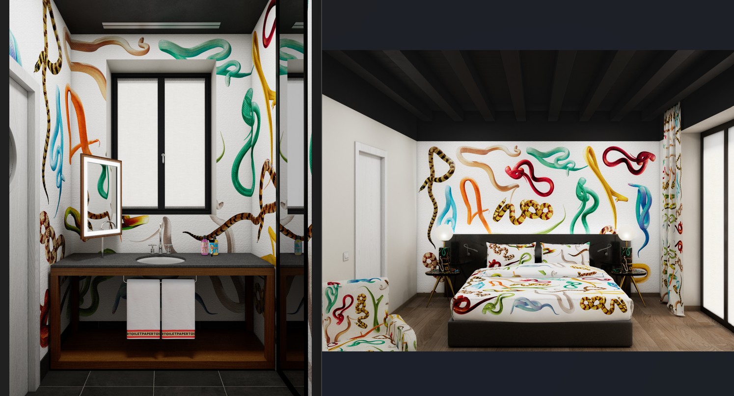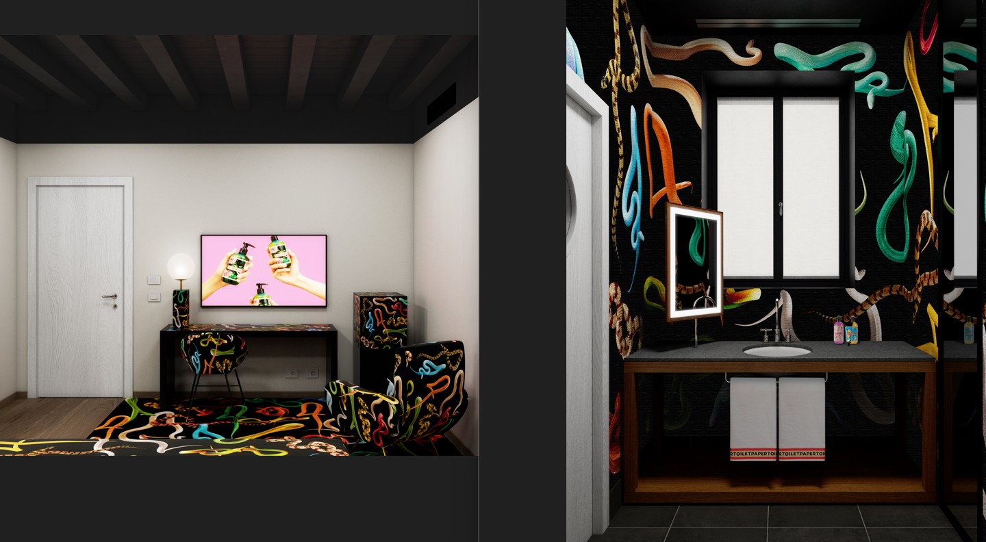 Suites, con l’allestimento di due camere nel suo stile inconfondibile, surreale e irriverente. Gli spazi saranno