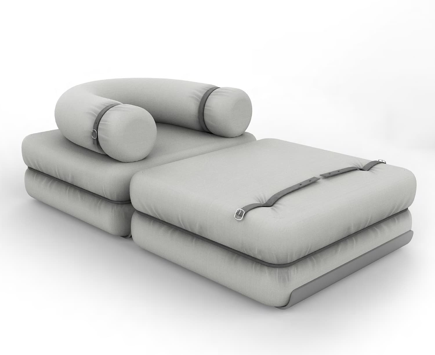 La poltrona, corredata del suo pouf, crea una perfetta dormeuse o in alternativa diventa divano di dimensioni contenute, ma di assoluto comfort.
