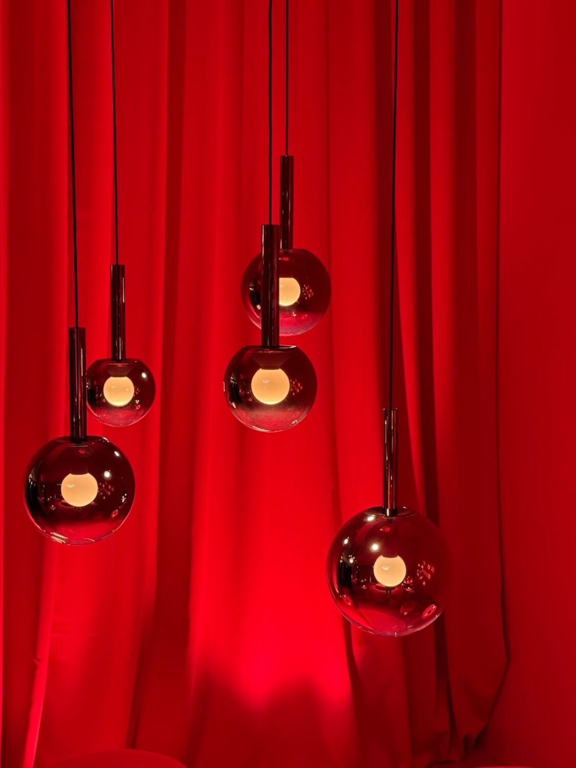 Il ‘Red Saloon’ posizionato al centro del padiglione vetrato è una sorta di dichiarazione: un’imponente messa in scena monocromatica di un rosso intenso che è pura opulenza! Qui l’intera serie Luna sfoggia il suo splendore in un ambiente che coniuga intensità e raffinatezza. Luna pura, la prima lampada cordless di Occhio, diffonde la magia di Luna generando atmosfere luminose inedite in tutto l’ambiente, dal freddo chiarore della luna al caldo bagliore del lume di candela. Protagonista di questo straordinario allestimento è Lunanova, una rivisitazione del classico lampadario chandelier.