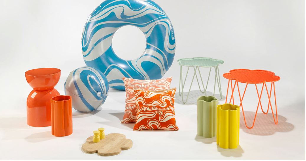 India Mahdavi. La collezione si chiama Made In/By India nata dalla seconda collaborazione tra la designer/architetto d’ interni India Mahdavi e la catena di negozi francese Monoprix. L’ampia collezione comprende: stoviglie, tavolino, sgabello, vasi, tappeti, cuscini, ciambella salvagente e persino una palla. Per il massimo del divertimento in piscina o al mare, con dei decori cromatici, questa collezione incanterà l’estate ! www.india-mahdavi.com e su www.monoprix.fr