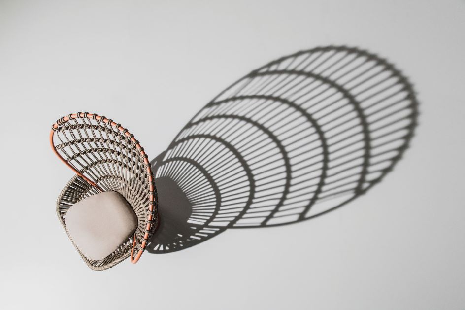 Paola Lenti. Chaise longue Telar, design Lina Obrégon ( ha vinto il Red Dot Best of the Best Winner 2020- uno dei maggiori premi del design mondiale). La struttura in acciaio è rivestita da un intreccio realizzato a mano con cinghie elastiche rivestite in filato “Rope”, in tinta unita o bicolore. La collezione si completa con sedie, poltrona, poltroncina e pouf. Gli intrecci di grande fascino, ricordano i favolosi anni ’50. www.paolalenti.it