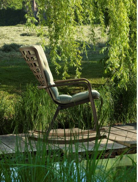 Nardi. Poltrona a dondolo Folio Rocking, design Raffaello Galiotto. Realizzata in resina fiberglass, la poltrona presenta un avvolgente schienale, alla base due slitte in polipropilene per ottenere una dolce oscillazione. I cuscini sfoderabili sono disponibili in 4 tessuti dedicati all’outdoor. Qualche caratteristica : resiste agli agenti atmosferici, è impilabile e completamente riciclabile. Ma non c’entra nulla con il dondolo della famosa scena del film Psyco. www.nardioutdoor.com