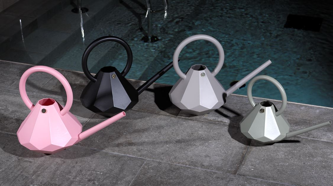 4) Garden Glory. Annaffiatoio Diamond Watering Can design Karl-Oskar/Designstudio. Stile diamantato da usare per annaffiare o da usare come centro tavola. Realizzato in materiale plastico nei colori: rosa, grigio, nero, verde menta, blu, bianco e perla in due misure da 4 o 8 litri. Progettato e prodotto in Svezia, sarà un vero gioiello per il vostro terrazzo o giardino. www.gardenglory.com
