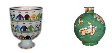 In foto di apertura da sinistra: Gio Ponti, Donatella – Serie Le mie donne, piatto da parata, maiolica, Società Ceramica Richard-Ginori, 1925 Gio Ponti, Fumatore stanco, vaso, terraglia, Società Ceramica Richard-Ginori, 1930 c.. Foto courtesy della mostra al MIDeC di Laveno.