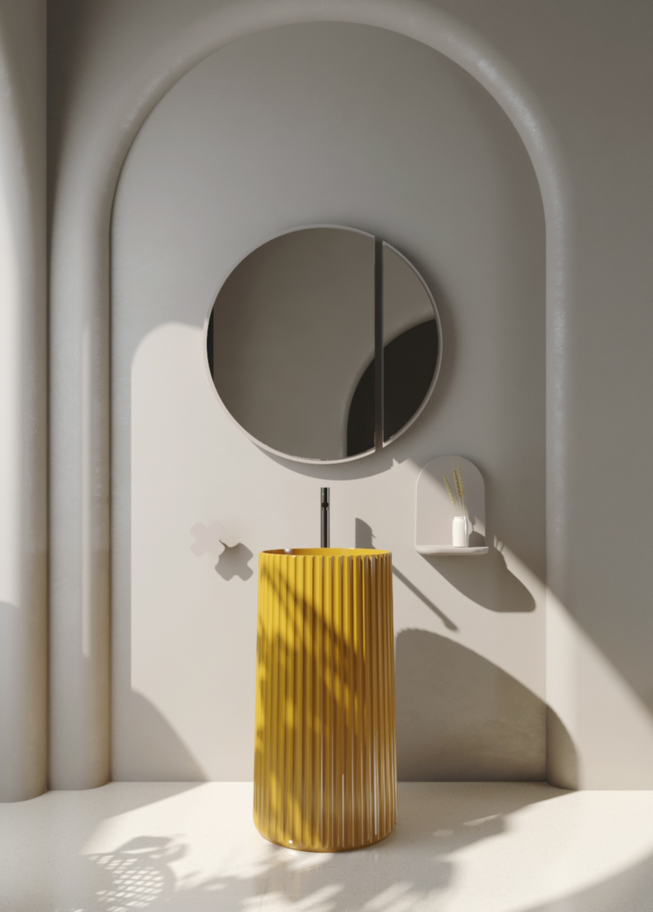 La nuova gamma Boid, sempre progettata da Zetae Studio, comprende lavabo da appoggio, lavabo freestanding e vasca freestanding. Realizzati in Luxolid®, questi prodotti assicurano alta resistenza e durabilità. Le forme, ispirate alla scultura classica greca, presentano superfici decorate con righe verticali e offrono una proposta cromatica che va dal Bianco Lipari al Sabbia Arsa fino al Cioccolato, garantendo un’estetica raffinata e versatile.