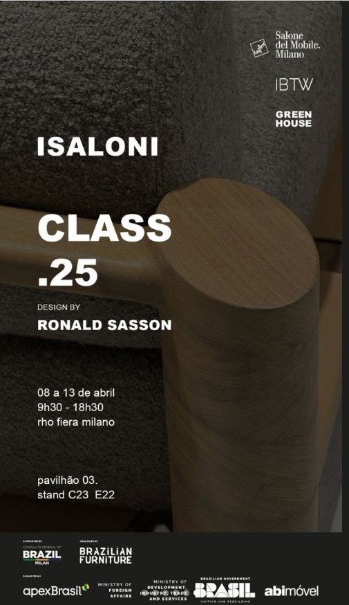 Ronald Sasson, oltre ad avere il solo show alla Galleria Paola Colombari, è presente alla Milano Design Week 2025 con altri progetti. La partnerhip con Riva 1920 sarà svelata alla fiera Salone del Mobile Milano presso il Riva1920 Building per il progetto “SIMILAR OUTSIDE. BETTER INSIDE. | SIMILI FUORI. MIGLIORI DENTRO.”. Sempre nella fiera di Rho (padiglione 3, stand C23 E22) il designer espone nel padiglione curato dal Brasile la collezione “Class.25” che racconterà in un talk pubblico l’8 aprile alle 14.