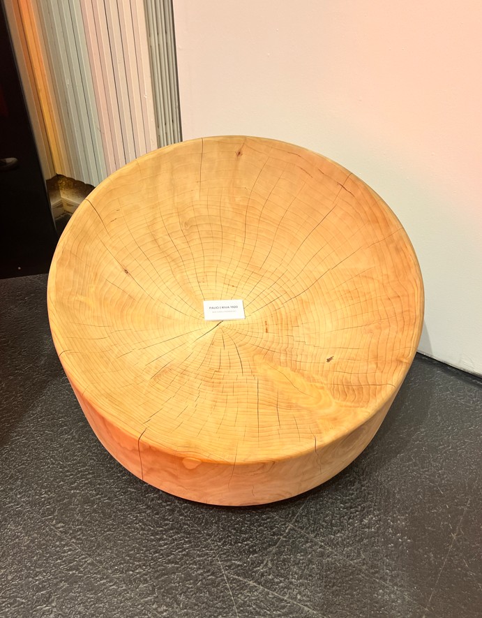 La mostra esposta fino al 9 settembre 2025 racconta anche la sua la sua evoluzione e poliedricità come designer. Si ammirano pezzi che vanno dalla lavorazione di materiali plastici, passando per il metallo, fino ad arrivare al legno, principalmente di recupero, un materiale che conosce benissimo e sa raccontare a perfezione.