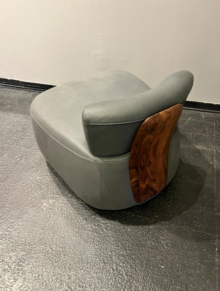 PASSO è una poltrona imbottita disponibile in tessuto o pelle, caratterizzata dal suo caratteristico schienale in legno massello, elemento strutturale e decorativo al tempo stesso. La scultorea struttura in legno collega perfettamente lo schienale alla seduta, creando un gioco dinamico tra i due elementi imbottiti. Il design mette in risalto il contrasto tra i cuscini morbidi e accoglienti e la presenza audace del legno naturale.