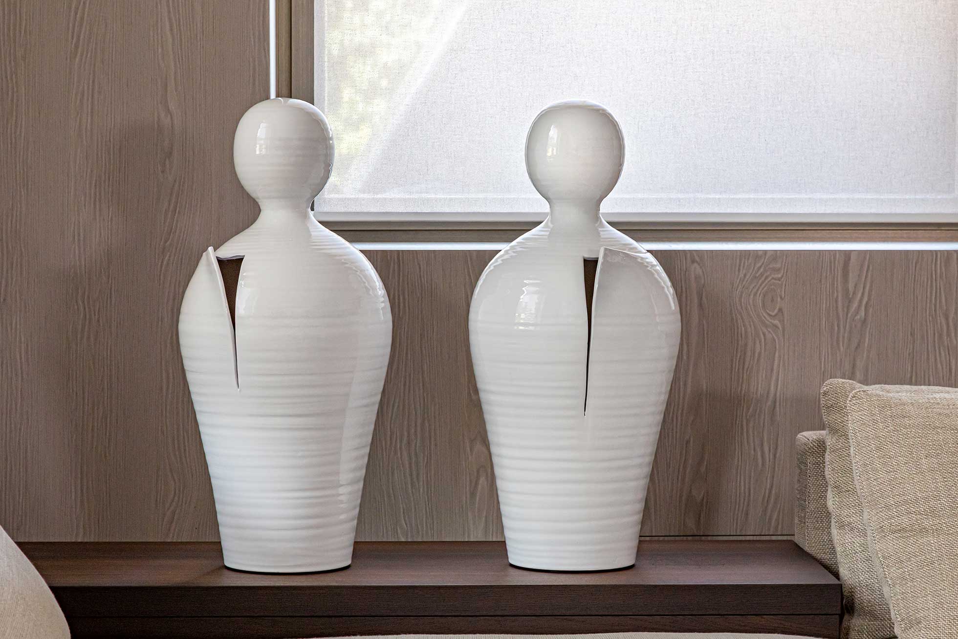 Alla base del progetto c’è la celebrazione della dualità umana: la tensione tra sacro e profano, tradizione e modernità, ordine e caos. Le opere Santopeccatore riflettono questa tensione, trasformandola in manufatti che combinano estetica e significato simbolico. Ogni pezzo nasce dalla collaborazione con i maestri ceramisti italiani, i quali, con un sapere tramandato da generazioni, fondono tecniche antiche e design innovativo per creare oggetti che sono molto più di semplici complementi d’arredo: vere e proprie esperienze sensoriali e narrative.