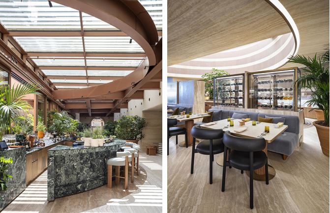 Tra gli spazi accessibili, anche il BIVIUM, l’area Restaurant-Café-Bar aperta tutto il giorno e luogo d’incontro esclusivo, che si fonde con un grande giardino d’inverno popolato da piante profumate della macchia mediterranea, come fichi, melograni, viti, corbezzoli e aromatiche. Palette terrose e superfici naturali creano uno spazio familiare, con arredi su misura disegnati da Patricia Urquiola e realizzati da Prisma, azienda italiana specializzata nella produzione d’impianti per la ristorazione.