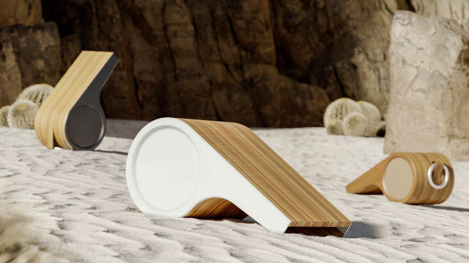 legno certificato, si fonde armoniosamente in elemento di arredo giocoso e allo stesso tempo sofisticato, funzionale e decorativo. Il prezioso fischietto acustico è realizzato da Magna Audio per Mulapreta, la società di design di André Gurgel.