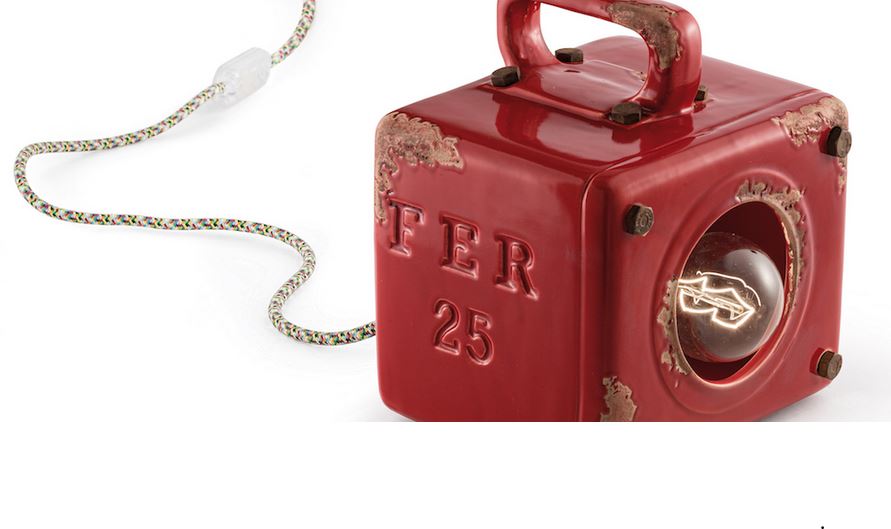 La lampada fa parte della collezione Retrò per arredare ambienti in stile d’epoca, che nella sua versione da appoggio, grazie all’impugnatura, può essere agevolmente spostata nelle varie stanze per dare un tocco di colore. Disponibile anche nelle versioni a sospensione e applique, la lampada della linea Industrial, modello C1650, ricorda nella forma cubica le luci usate nelle miniere e negli scali ferroviari di un tempo. Realizzata in ceramica effetto trompe l’oeil, con la garanzia di una realizzazione artigianale curata nei minimi dettagli, la sua superficie è ricoperta da smalti con ricercati effetti anticati, fintamente trascurati; dettagli voluti ed ottenuti attraverso precisi passaggi tecnici che le conferiscono un aspetto tattile e visivo vissuto (in 10 colori diversi).