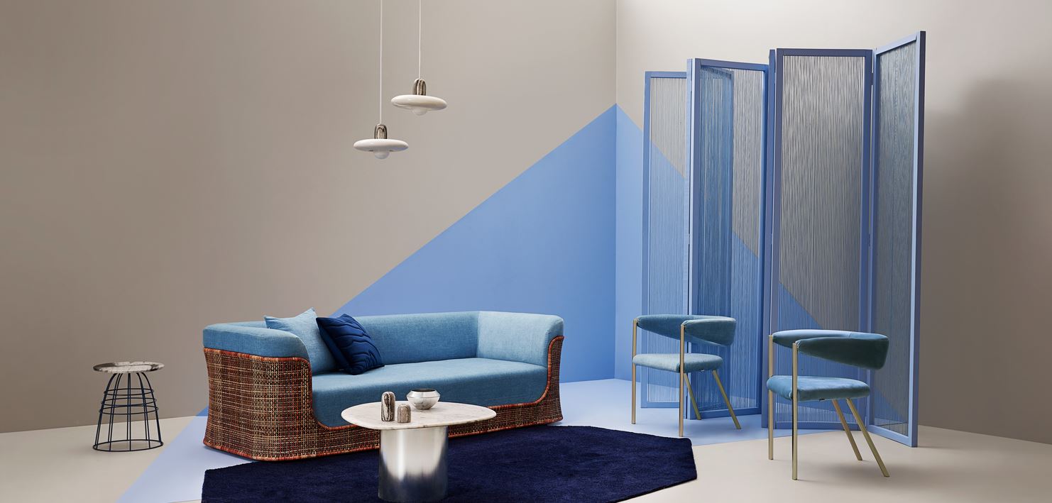 YANTR by KOY (in foto d’apertura) è una serie composta da quattro complementi d’arredo scolpiti a mano in marmi rari, le cui forme richiamano le simbologie ancestrali ispirate alla spiritualità indiana: una foglia di fico stilizzata per il piano del tavolo, blocchi di marmo levigati come ciottoli di fiume per il pouf, oppure l’armonia fra elemento maschile e femminile nella lampada a sospensione. YANTR significa “Talismano” in sanscrito, KOY è il brand che fa capo al designer e che comprende anche una vastissima e poliedrica serie di mobili e oggetti che esplora la trasversalità dei materiali e del colore. Anche portati all’estremo. Si creano così originali divani anni ’70 in rattan con imbottiti dalle mille tonalità, poltrone morbide e avvolgenti come giganteschi nidi, sedute intrecciate come raffinati jacquard, tavoli, tavolini e suppellettili di ogni forma e composizione materica.