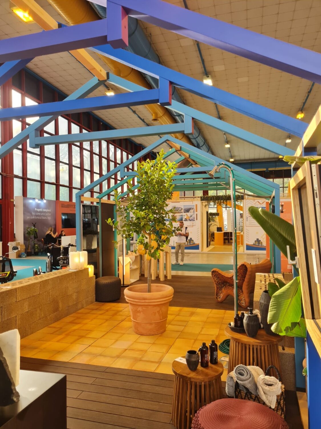 Assieme a GreenBlueDays, che organizza il simposio green ogni anno nella fiera partenopea, gli architetti di Studio74ram, Francesco Rotondale ed Emilia Abate , hanno realizzato un’installazione a tema “la bellezza che abiti”. I visitatori hanno potuto godere quindi della sensazione di vivere per il tempo di una visita nella casa del domani.