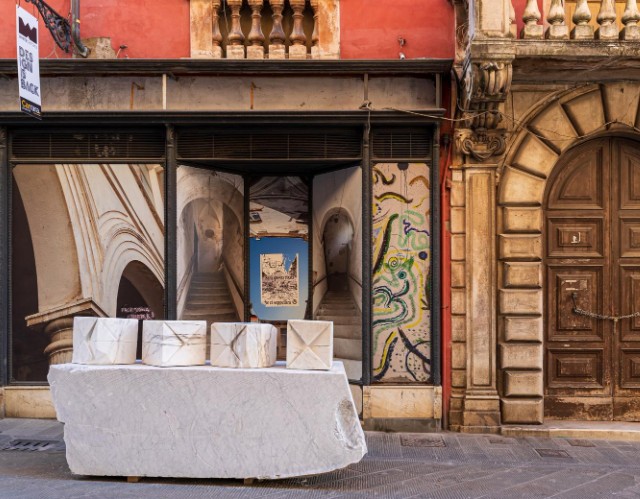 Nello showroom, aperto a Carrara nel 2012, la mostra presenta le linee moderne dei prodotti disegnati da Niccolò Garbati per il brand Progetto99 Stone Design.