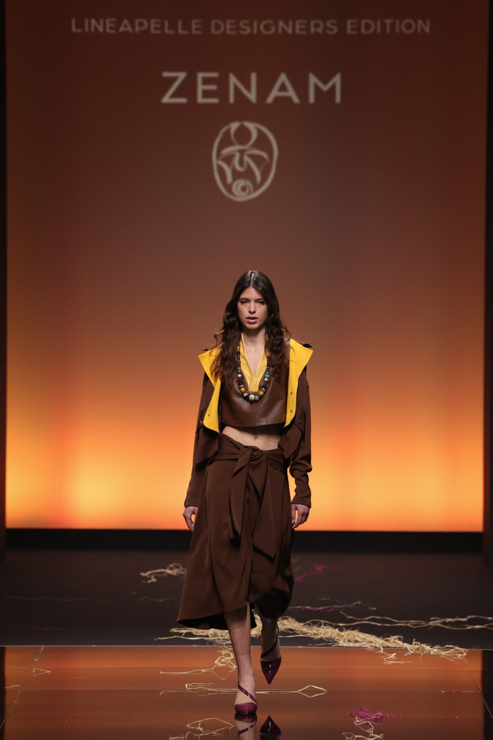 Sulla passerella di Lineapelle ha sfilato la collezione ZENAM di Paul Roger Tanonkou che, grazie alla nuova partnership tra Lineapelle e Afro Fashion Association, ha portato in scena il colore e la pluralità. Con un set che richiamava il caldo della sabbia desertica e la magia dei tramonti naturali africani, si è vista una collezione all’insegna dell’inclusività dove Africa e Europa si fondono in un affascinante mix di colori, stampe e materiali. “Identité Plurielle”, Identità plurale, questo il nome del fashion show, vuole essere un messaggio profondo di inclusività, di connessione tra mondi e di celebrazione delle diversità che ci arricchiscono. Un invito a riconoscere e abbracciare le molteplici sfaccettature dell’identità umana, in un mondo sempre più interconnesso e globalizzato.