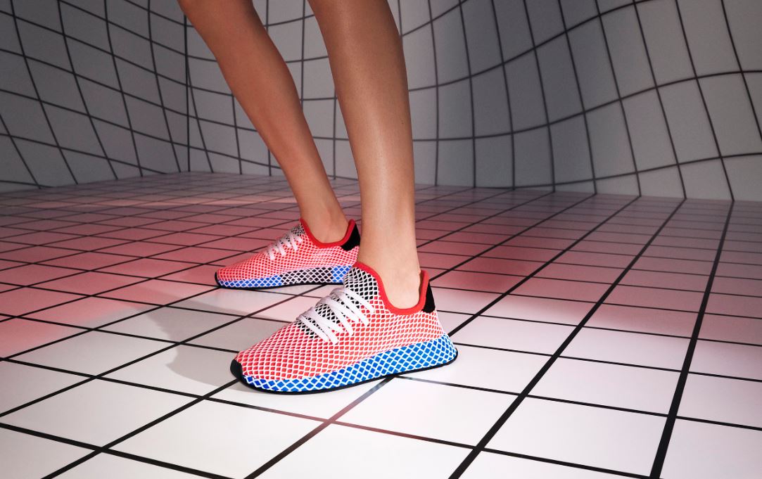 Attingendo nella stessa misura ai mondi dell’urbanistica, dell’architettura e dei fenomeni naturali, Deerupt mantiene al centro della propria estetica l’inconfondibile struttura a rete. Lanciata inizialmente nei modelli da running adidas degli anni ’80 – e passata alla storia come caratteristica imprescindibile per i runner newyorkesi e all’interno della silhouette Marathon Training – oggi la struttura a rete si fa elastica, estendendosi fino ad avvolgere l’intera scarpa. Reinterpretata in versione maxi e declinata in tonalità elettriche, la rete si trasforma in uno schema visivo sfrontato, in linea con le tendenze contemporanee.
