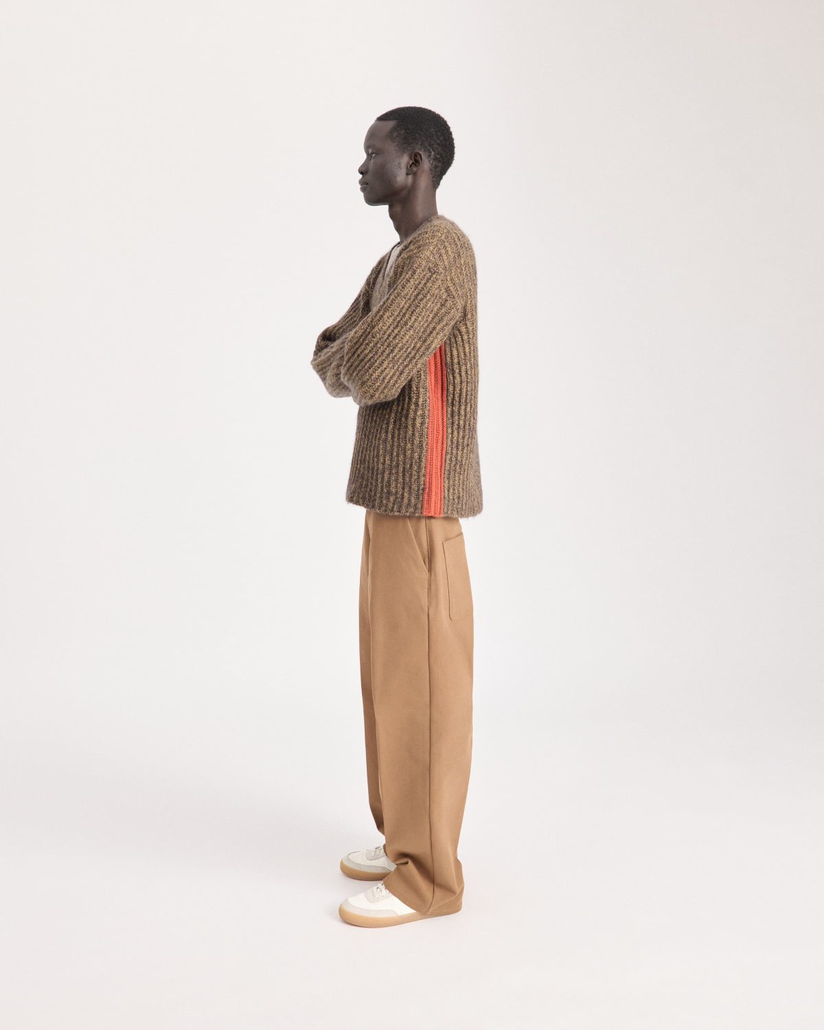 Ispirata alla linearità della natura, la collezione appena vista a Milano Moda Uomo 2025 propone una palette cromatica che evoca le sfumature di un bosco all’imbrunire: toni caldi di giallo e senape, accenti di ruggine, verdi intensi e nuance minerali, accompagnati da neutri sofisticati.