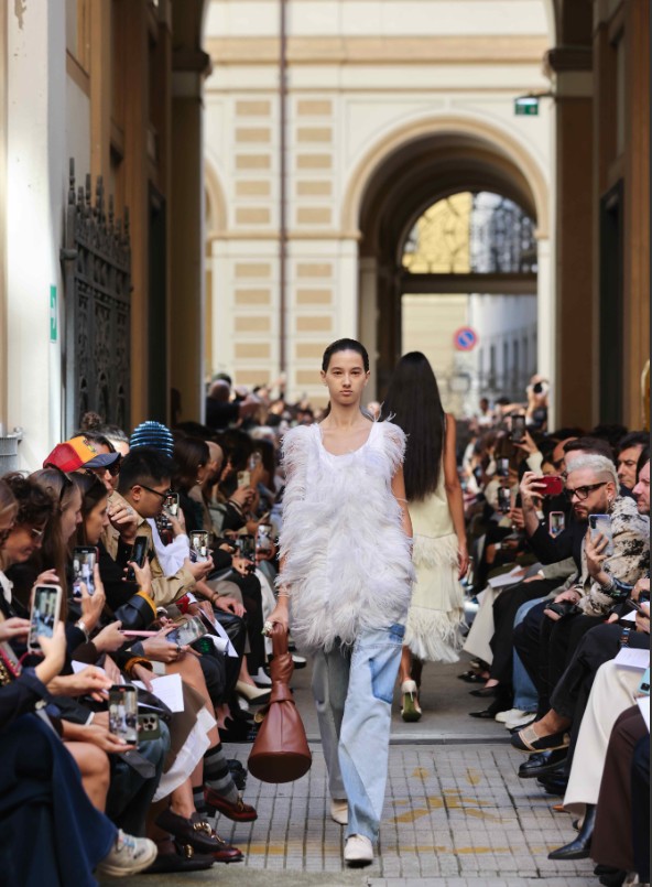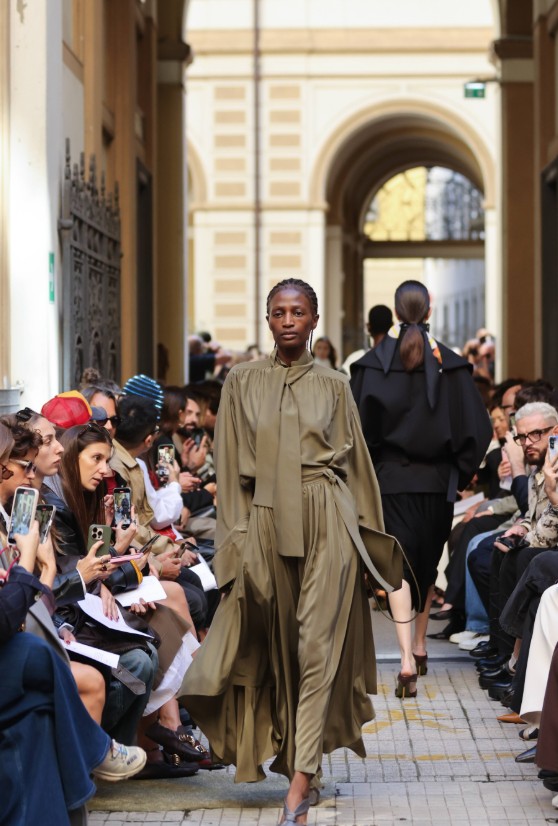Una moda elegante per donne che credono che a volte sono proprio le presenze più silenziose ad avere la forza di restare, autentiche e impercettibilmente incisive. Calcaterra per il suo decennale ha mandato in passerella a Milano dei capi estivi per il 2026 ispirati a fenomeni naturali. Il vento, quello che irrompe con violenza e sconvolge l’aria, sembra potente, ma passa in fretta e lascia solo disordine. I lampi che squarciano la notte in una frazione di secondo illuminano il cielo con una luce abbagliante, ma così effimera da non concedere mai il tempo di coglierne la vera intensità. Così sono molte delle manifestazioni dirompenti della natura: viste, percepite, dimenticate in un battito di ciglia. Ma esiste anche un altro modo di essere: esistere in silenzio.