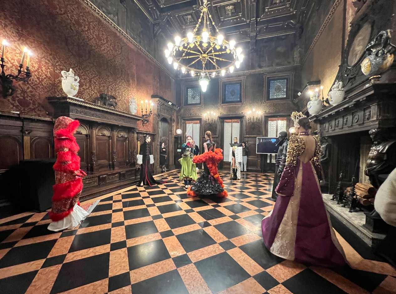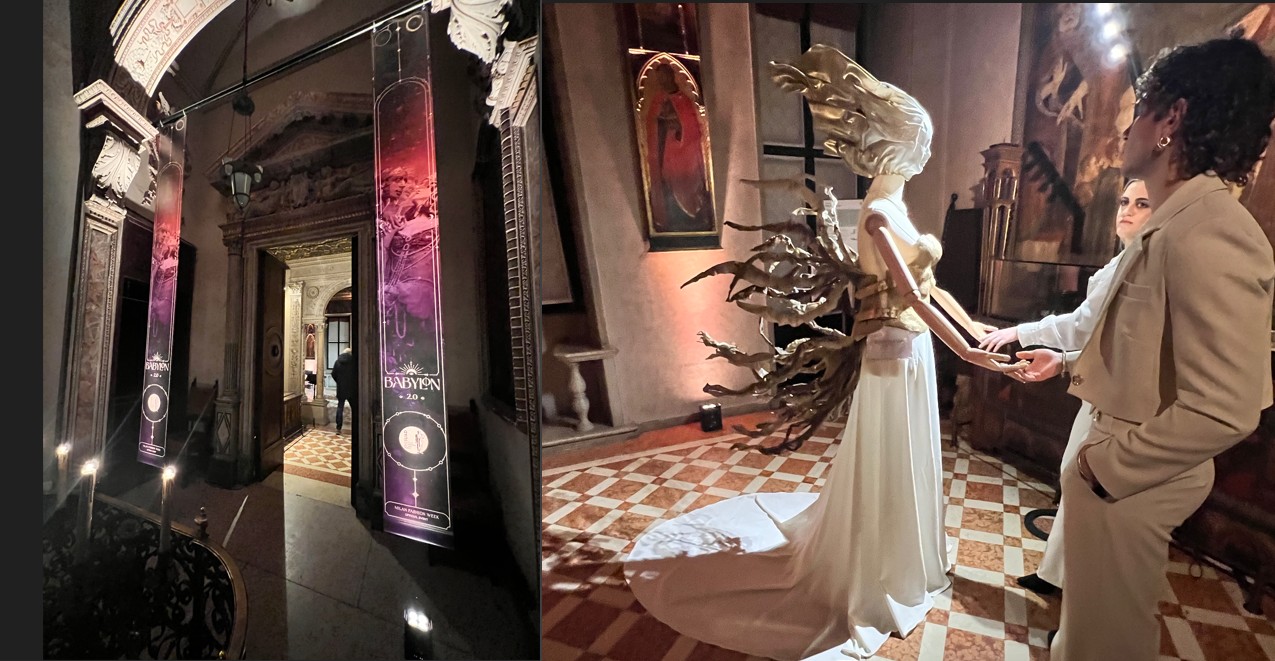 Un plauso per quello che è successo di sensazionale nel mezzo della Milano Fashion Week 2025 lo dobbiamo tributare a due persone. Simbolicamente rappresentano il meglio del saper fare ‘squadra’ nella Milano modaiola spezzettata di particolarismi: Antonio D’Amico, illuminato direttore di Museo Bagatti Valsecchi, una delle case nobiliari più affascinanti del centro cittadino, e Michele Lettieri, presidente dell’accademia di moda IUAD con sedi a Milano e Napoli. Questo perché per la prima volta, Accademia IUAD ha presentato la mostra “Babylon 2.0” inserita nel calendario ufficiale di Camera Nazionale della Moda Italiana, in occasione della Milano Fashion Week Donna. Un’opportunità unica per gli studenti, che hanno avuto la possibilità di far conoscere le proprie creazioni a professionisti del settore provenienti da tutto il mondo.
