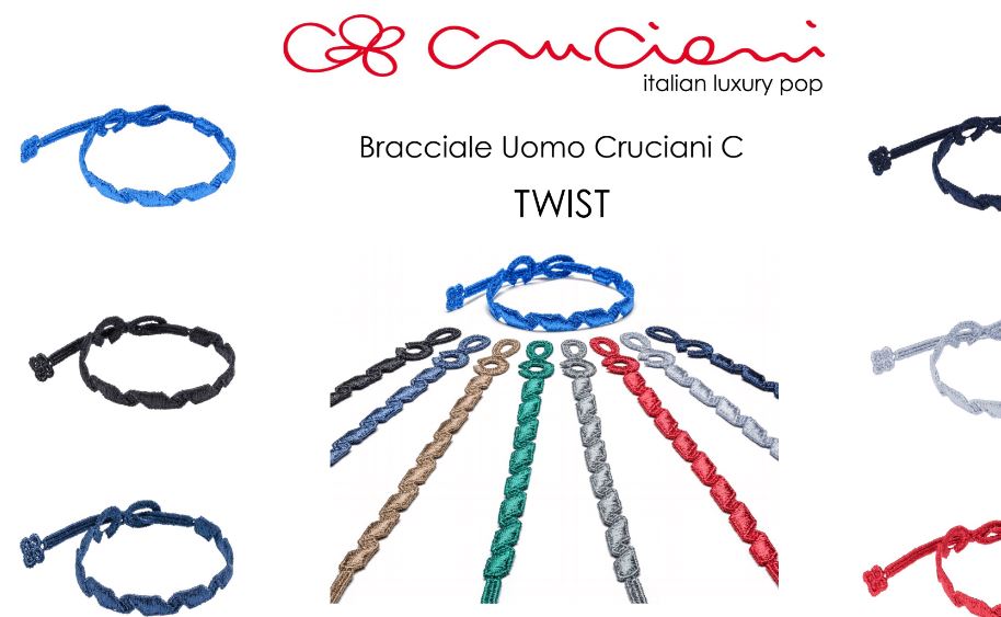 IL BRACCIALETTO TWIST – Linee pure e geometriche vestono il nuovo accessorio maschile firmato Cruciani C che si prepara ad essere l’oggetto del desiderio per la prossima stagione e che va ad aggiungersi alla già ricchissima famiglia di braccialetti in pizzo macramé.