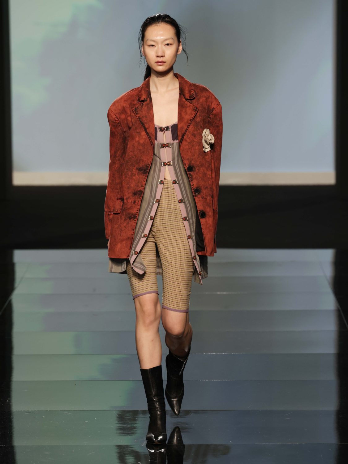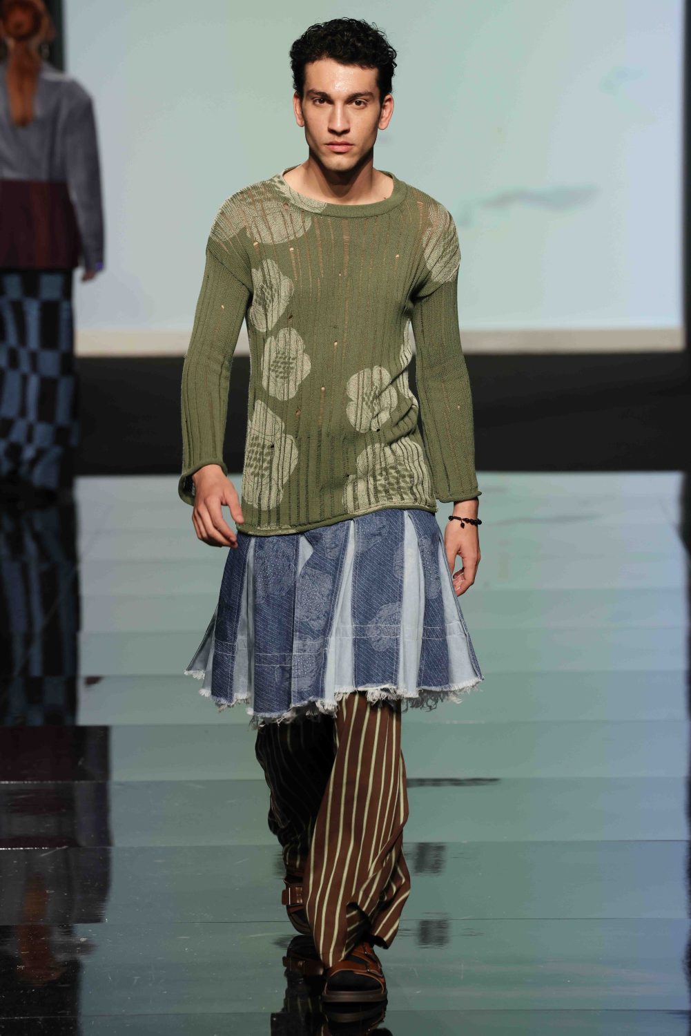 I due creativi scrivono: “Le orbite racchiudono l’essenza della danza perpetua della vita. Nel vasto arazzo cosmico, i pianeti ruotano attorno al sole, i satelliti circondano i pianeti, le migrazioni si muovono periodicamente e regolarmente, i flussi di persone sono orbite sociali e materiali, in un balletto cosmico che trova sempre e comunque un centro. Allo stesso modo, le orbite delle nostre vite sono influenzate da forze ed eventi: scelte, circostanze. Le orbite evocano la contemplazione sulla natura ciclica dell’esistenza. Ogni rivoluzione si chiude, completa il suo moto, il cerchio e riparte sulla stessa via. Ad ogni inizio non siamo mai esattamente gli stessi. La ripetizione di schemi serve a ricordare che il cambiamento è l’unica costante. Questa collezione ingloba differenti concetti e diversi stili. Queste orbite creative ruotano intorno ad uno stesso schema compositivo ed estetico, un unico modus operandi e processo creativo che ad ogni nuovo inizio produce nuovi prodotti. Le orbite ed in questo caso le molteplici capsule all’interno di questa collezione simboleggiano sia l’ordine che il caos, riecheggiando il delicato equilibrio che definisce il nostro viaggio creativo. Le creazioni, in orbita, pur avendo lo stesso centro, si allontanano e si avvicinano ma non si scontrano mai, hanno un loro senso e una loro vita”.