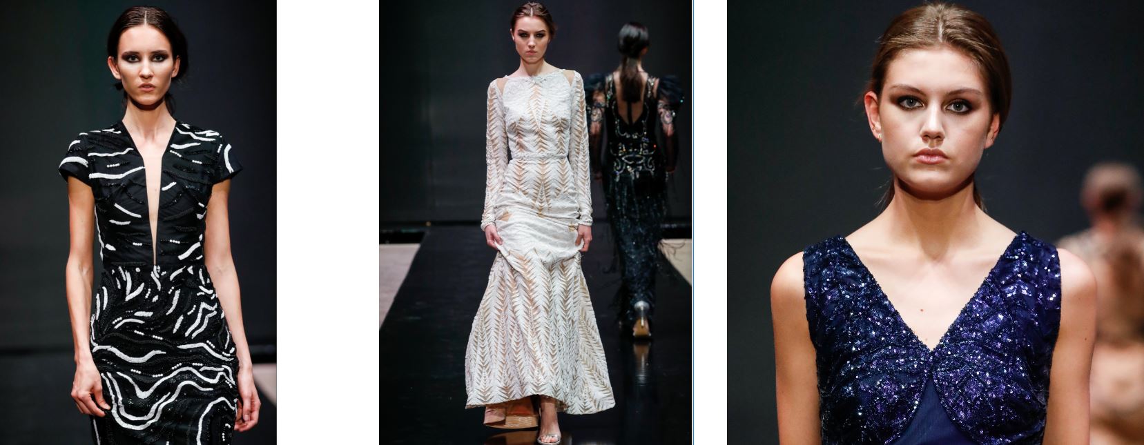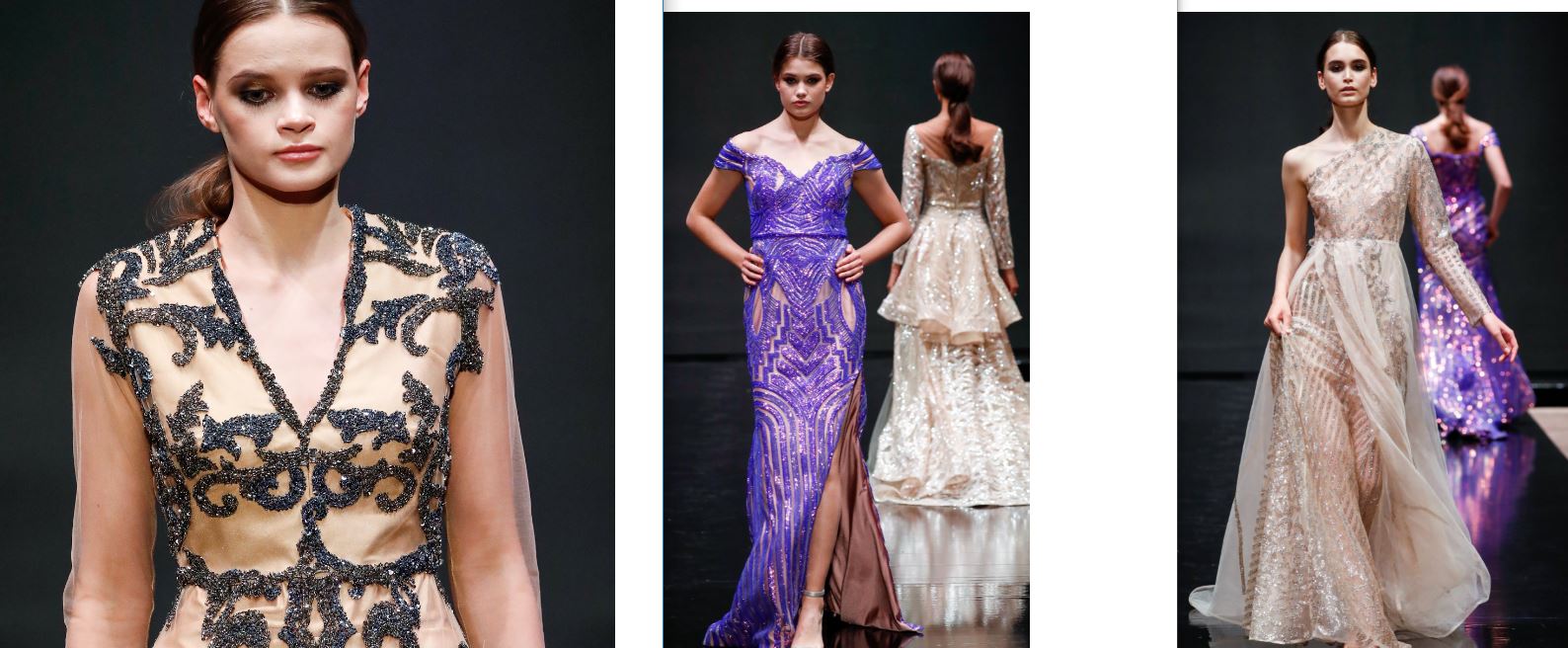 Splendidi abiti da sera in seta sono finemente ricamati e ricoperti di cristalli. Abiti di style royal semi trasparenti con le scollature profonde donano il tocco di provocazione che non supera mai la linea della pura eleganza. Indossare una di queste fantastiche creazioni trasformerebbe qualsiasi donna in una sirena da un milione di dollari.